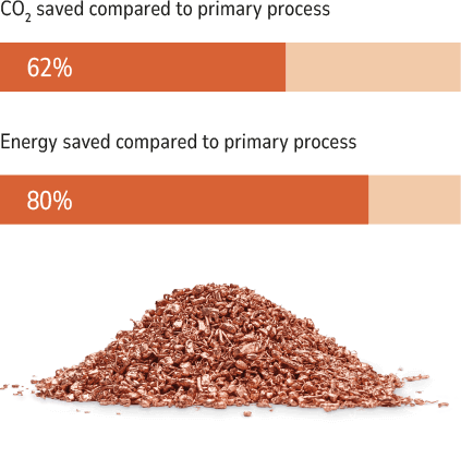 Producing non-ferrous metals from recycled raw materials requires far less energy and produces far fewer carbon emissions than producing them using virgin raw materials.