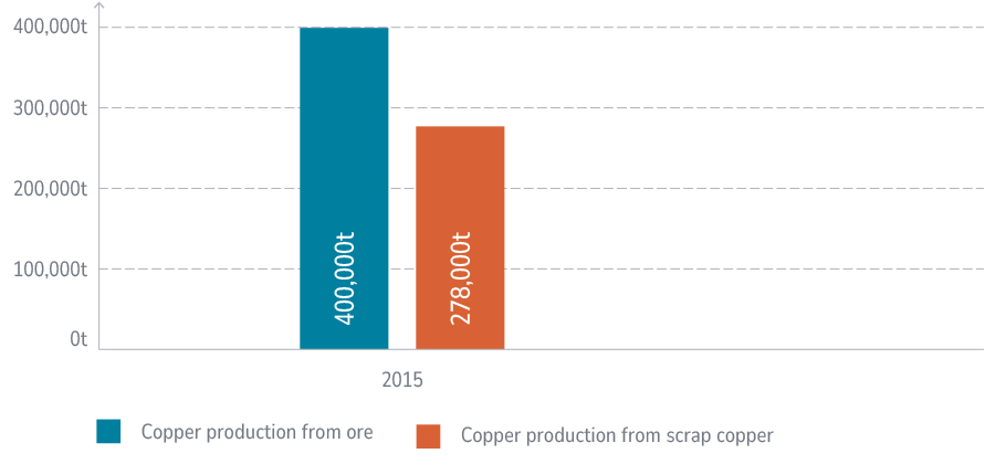 Around 35% of the copper produced worldwide comes from recycling activities. This figure lies at 40% in Germany