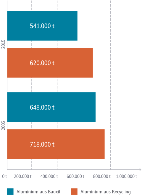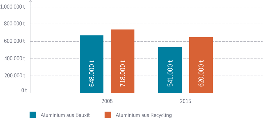 Aluminium aus Recycling und aus Primärrohstoffen – Zahlen im Vergleich (Produktion in Deutschland)