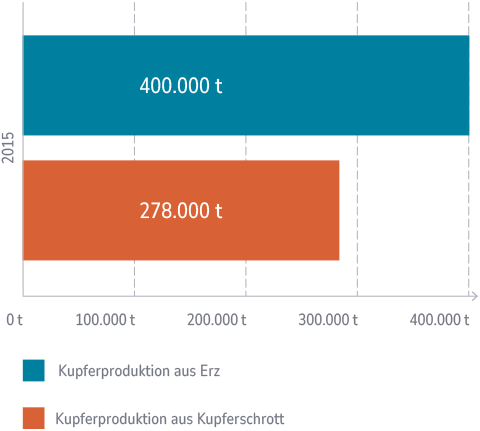 Kupfer aus Recycling und aus Primärrohstoffen – Zahlen im Vergleich (Produktion in Deutschland)